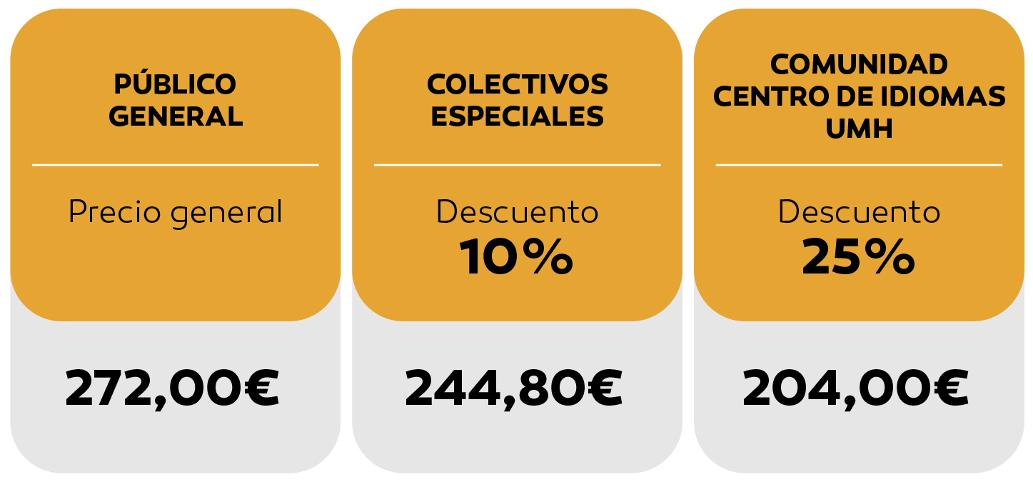 Identifica el grupo al que perteneces para conocer el precio del curso (descuento correspondiente ya aplicado):